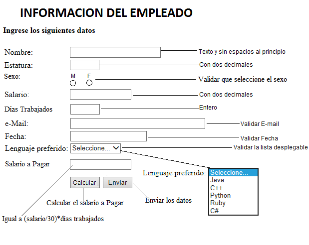 Realizar el siguiente formulario teniendo en cuenta HTML, CSS, JS.